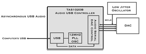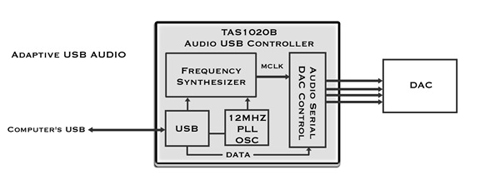 Every USB DAC you have ever heard uses Adaptive Mode USB Audio. This means the computer controls the audio transfer rate, and the USB device has to follow along updating the Master Clock (MCLK) every one millisecond. The USB bus runs at 12MHz, which is unrelated to the audio sample rate of any digital audio format (i.e. 44.1K requires a MCLK = 11.2896MHz). Therefore Adaptive Mode USB DACs must derive the critical master audio clock by use of a complex Frequency Synthesizer. Since the computer is handling many tasks at once, the timing of the USB audio transfers has variations. This leads to jitter in the derived clock, which means you are not getting the maximum sonic potential available from computer-based audio.