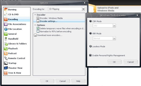 Select as the Encoder Windows Media and the Settings as Lossless Mode as displayed above.